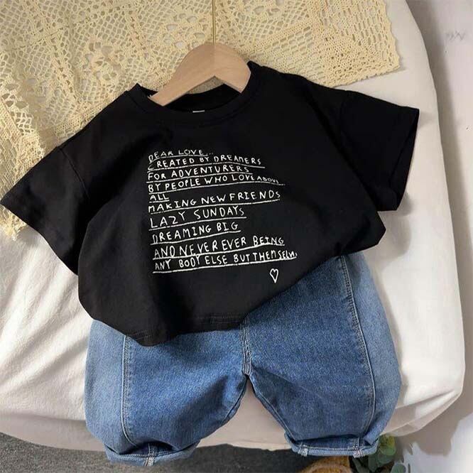 ・キュートなキッズファッションを提案する、韓国風子供服。男女兼用で着用可能な、おしゃれな半袖トップスです。
