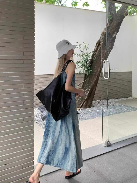 ・胸元を大胆に見せる吊りワンピースは、セクシーで大人の雰囲気を演出するイブニングドレスにもなります。